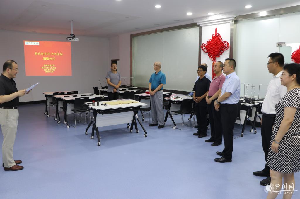 7月6日下午,陕西渭南民间书法艺术家程启民先生书法作品捐赠仪式在bet36365路检测中心国际教育公寓国际学生活动中心举行。副校长李学军出席并代表学校接受捐赠,陕西书法艺术家程启民、陕西彩绘书画艺术家张子君、陕西“通草画”艺术家孟仲恺和国际教育学院师生代表等参加了捐赠仪式。校友总会办公室主任殷立雄主持仪式。