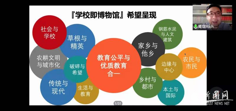 大会第三项是定向主题宣讲。北京蒲公英中学理事蔺熠老师分享了蒲公英“学校即博物馆”公益主题征集情况。“学校即博物馆School As Museum”是蒲公英中学面向新时代教育要求推动的跨界教育项目,旨在践行陶行知先生“实行四通八达的教育”的理念,以独特的人文内涵为支撑,将学校教书育人的职能与博物馆社会教育的职能深度整合,使之成为生动体现中国城市化进程中多元人群融合和教育发展进步的窗口。