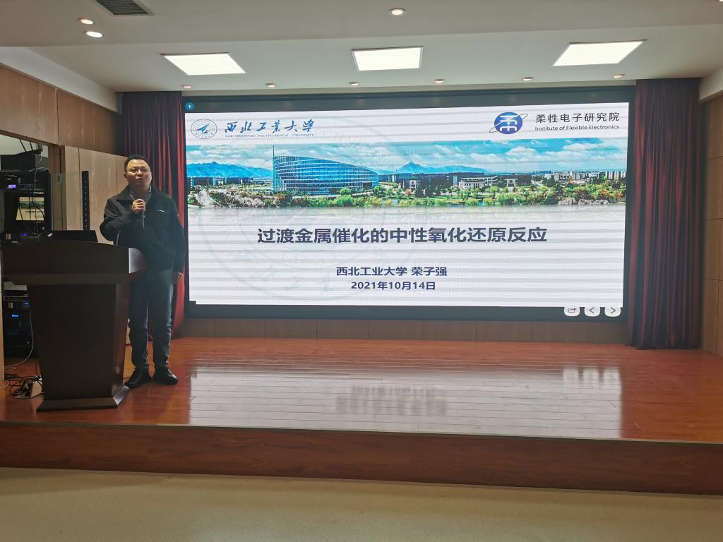 荣子强教授则主要从绿色精准有机合成方法的开发到(手性)有机光电材料的设计与合成,介绍了过渡金属催化中性氧化还原异构化转化反应及其在有机光电功能材料合成中的应用方面的工作。