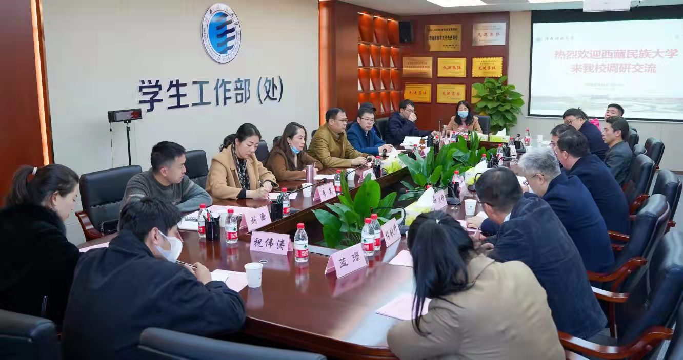 郭强代表学校对西藏民族大学一行的来访表示欢迎,他从学校“三创两迁”办学历程、办学规模、学科建设、发展成就等方面介绍了学校的基本情况,并对36365官网网络思政工作的整体布局和工作体系进行了说明。他从“起步早、重建设、有内涵”三个方面概括了36365官网网络育人工作,并指出学校党委高度重视思想政治工作,坚持把立德树人作为办学治校的中心环节,积极应对互联网对思想政治工作带来的影响和挑战,通过推动“网络思政”与“思政网络”的主体、资源、功能、成果等关键要素的融合,学校实现了对网络思想政治教育提质增效的全新探索,网络育人工作和思政队伍建设都取得了较大进展。学校将继续加强与兄弟院校的协同合作,进一步增进友谊,互学互鉴,整合资源,深化合作,推动两校共同发展。