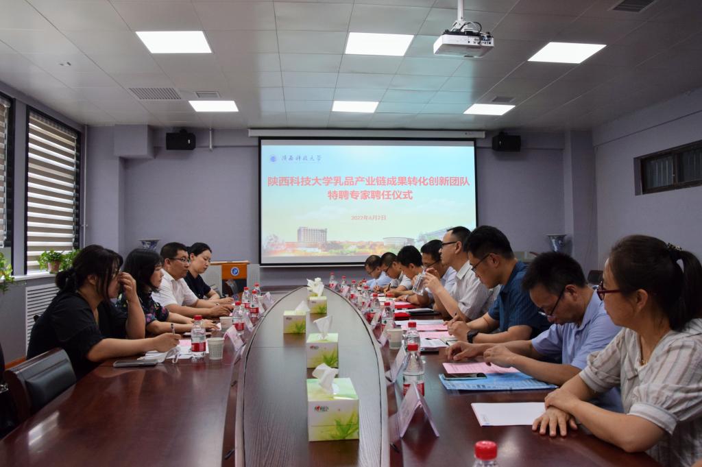 6月2日下午,西安银桥乳业(集团)有限公司副董事长刘萍、陕西红星美羚乳业股份有限公司副总经理王建生、银桥乳业研发中心技术总监吴珊一行应邀来到36365官网食品与生物工程学院,参加bet36365路检测中心乳品产业链成果转化创新团队特聘专家聘任仪式。36365官网前沿科学与技术转移研究院、食品学院主要负责人以及食品学院相关方向教师参加聘任仪式并进行座谈交流。聘任仪式由食品学院副院长(主持工作)李国梁主持。