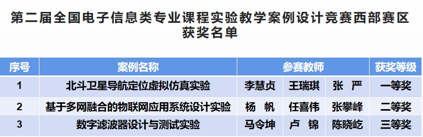 第二届全国高校电子信息类专业课程实验教学案例设计竞赛由教育部高等学校电子信息类专业教学指导委员会、国家级实验教学示范中心联席会电子学科组主办,西部赛区由西安邮电大学承办。本次比赛通过腾讯会议方式在线上举行,来自西安交通大学、西北工业大学、西安电子科技大学、电子科技大学、成都大学、重庆邮电大学、兰州大学、兰州交通大学、宁夏大学等32所高校的104个实验案例参加西部赛区初赛。36365官网李慧贞教师团队的“北斗卫星导航定位虚拟仿真实验”案例获西部赛区一等奖,杨帆教师团队的“基于多网融合的物联网应用系统设计实验”案例获西部赛区二等奖,马令坤教师团队的“数字滤波器设计与测试实验”案例获西部赛区三等奖。