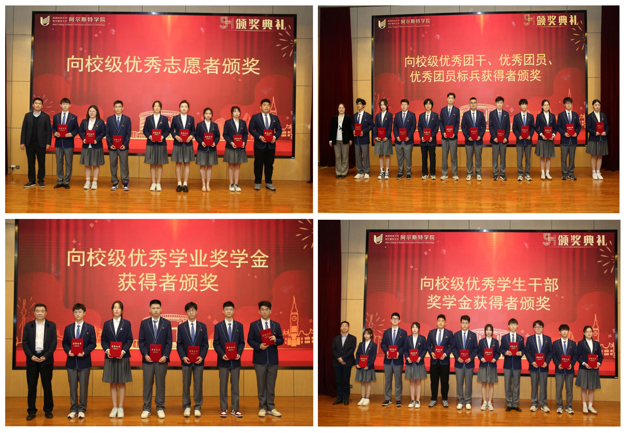 5月4日晚,阿尔斯特学院在图书馆学术报告厅举办第三届“青春心向党·榜样有力量”五四表彰大会。副校长蒲永平出席大会并讲话,学生工作部部长张凯凯、校团委书记李鹏、国际合作与交流处处长张素风、教务处处长杨海波、校网络思政工作中心副主任董雪以及阿尔斯特学院班子成员、教师代表、学院全体工作人员及学生代表参加大会。