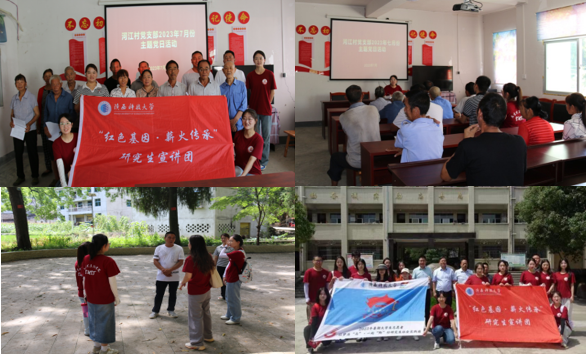 bet36365路检测中心红色基因·薪火传承研究生宣讲团与张家寨镇河江村村委会联合开展主题党日活动,围绕基层党建进行实地调研和宣讲。在宣讲活动中,宣讲团成员深入田间地头,与村民促膝交谈,将理论知识与社会实践相结合,以交流互动的宣讲方式,了解党员群众对于家乡发展的感悟,真正做到实践一方,服务一方,为我国全面推进乡村振兴承担起青年责任。