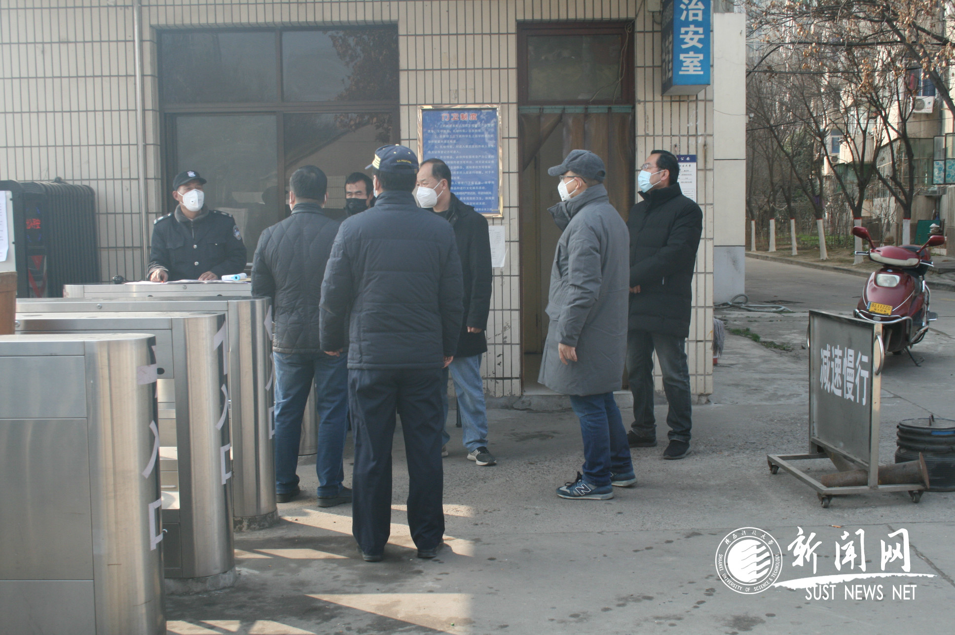 随着疫情的进一步发展,咸阳校区管委会决定于1月25日与西安校区同步实施校区封闭管理。1月28日下午,管委会领导班子全体成员在工作人员陪同下,对校区疫情防控工作进行了实地检查和指导。检查过程中,班子成员认真查看了门禁管理、出入人员体温测试与登记、公共场所消毒、校区内行人口罩佩戴情况。刘运要求,要提高政治站位,深刻认识做好新型冠状病毒感染的肺炎疫情防控的重要性和紧迫性,把人民群众生命安全和身体健康放在第一位,把疫情防控工作作为当前最重要的工作来抓,坚定不移把党中央和上级各级部门的决策部署落到实处。随后,管委会班子还召开现场办公会,进一步强化、细化了疫情防控的的各项举措,并要求相关部门立即执行到位。