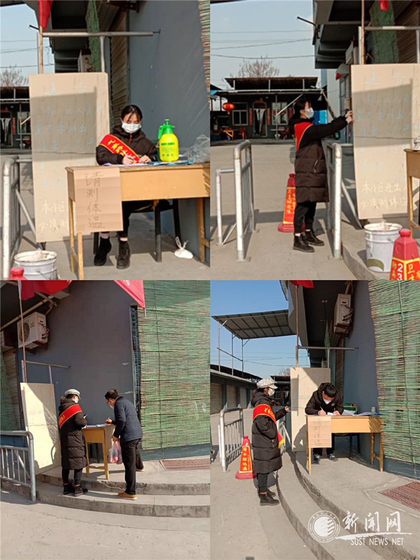 机电学院研17第二党支部党员张博文、设艺学院研18党支部王蓓蕾,分别在宝鸡市金台区引渭路社区,山西运城新绛县气象路社区做志愿服务,为疫情防控贡献力量。