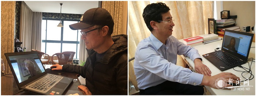 学院班子成员薛朝华教授(左一)、赵雪妮教授全程监管线上教学运行情况
