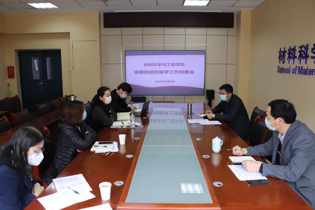 继召开多次视频会议之后,3月2日复课第一天,材料学院党政班子全体成员召开会议,再次研究部署学院防疫和复学工作。会上,院党委书记杨长安领学了习近平总书记“2·23”重要讲话精神和学校书记专题会、校长办公会上的工作安排,要求学院班子成员要统一思想,提高认识,统筹兼顾抓好防疫和复学两个大局,落实好上级各项要求,全面进入工作状态。院长朱建锋对教职工分批返校、线上授课、专业建设、基金申报、学科评估、就业指导、实验室消杀等工作进行逐一部署,强调要积极转变工作思路,主动做好服务保障,为教职工恢复教学、科研秩序提供便利条件。会上对学院2020年度目标任务和重点工作进行了深入研讨和细化分解。