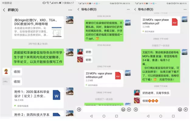 疫情防控期间,材料学院科研工作不等不靠,通过线上QQ群、微信群、腾讯会议、学习强国等平台推进工作,鼓励教师居家查阅文献增进“内功”。逐步解封期间,学院鼓励符合进出教学区域条件的教职工,在完成对实验区域的通风消杀后,有序开展科研工作。在实行“一码通”管理的第一天清晨,功能薄膜及涂层材料研究团队的青年教师冯永强,经学院批准之后已经开始了他的实验室之行。他在给主管院领导的汇报中说:“作为一名共产党员,在封闭管理期间,我的责任是守好小家,为社区这个大家贡献一份志愿力量;现在实行半封闭管理,我可以回到实验室开展课题研究,我要努力回归青年教师终身为之奋斗的事业。”