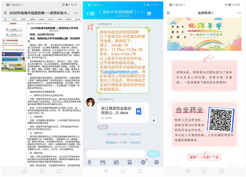 主动出击,广泛动员。学院广泛挖掘合作单位和企业资源,协同专业教师力量,多方获取整合招聘信息,联系到浙江临海、嘉兴港区人社局两家政府单位组织线上18家企业组团招聘,陆续邀请就业基地单位、校友企业11家线上宣讲,并借助学校就业管理系统、微信公众号、社会招聘网等多个平台发布招聘公告,在做好用人单位邀请和对接工作的同时,积极满足毕业生求职需求,努力为毕业生拓宽就业渠道,创造更多就业机遇。学院立足学生就业观念转变,邀请部分研究生和企业校友做客未就业学生群,现身说法,进一步巩固生涯规划教育成果,帮助学生认清现实和定位自我。