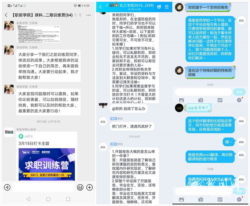 聚焦问题,强化指导。学院通过前期线上广泛调研,了解学生需求和就业困难,结合实际建立未就业学生QQ群,邀请前程无忧、应届生求职网华西区推广负责人兰军伟线上开展为期七天的求职训练营两期,共计100余名学生参与其中,精准指导,帮助同学们破解求职中的痛点、难点。同时,学院全体辅导员、学生党员组成“智囊团”,搭建“邦邦”公共QQ号,充分发挥各自所长,借助网络平台在生涯规划、企业选择、简历制作、网络求职技巧、礼仪等方面推出系列就业指导专题,开设“一对一”小课堂,确保疫情防控期间就业工作不断档、服务不掉队,增强毕业生就业“硬实力”。