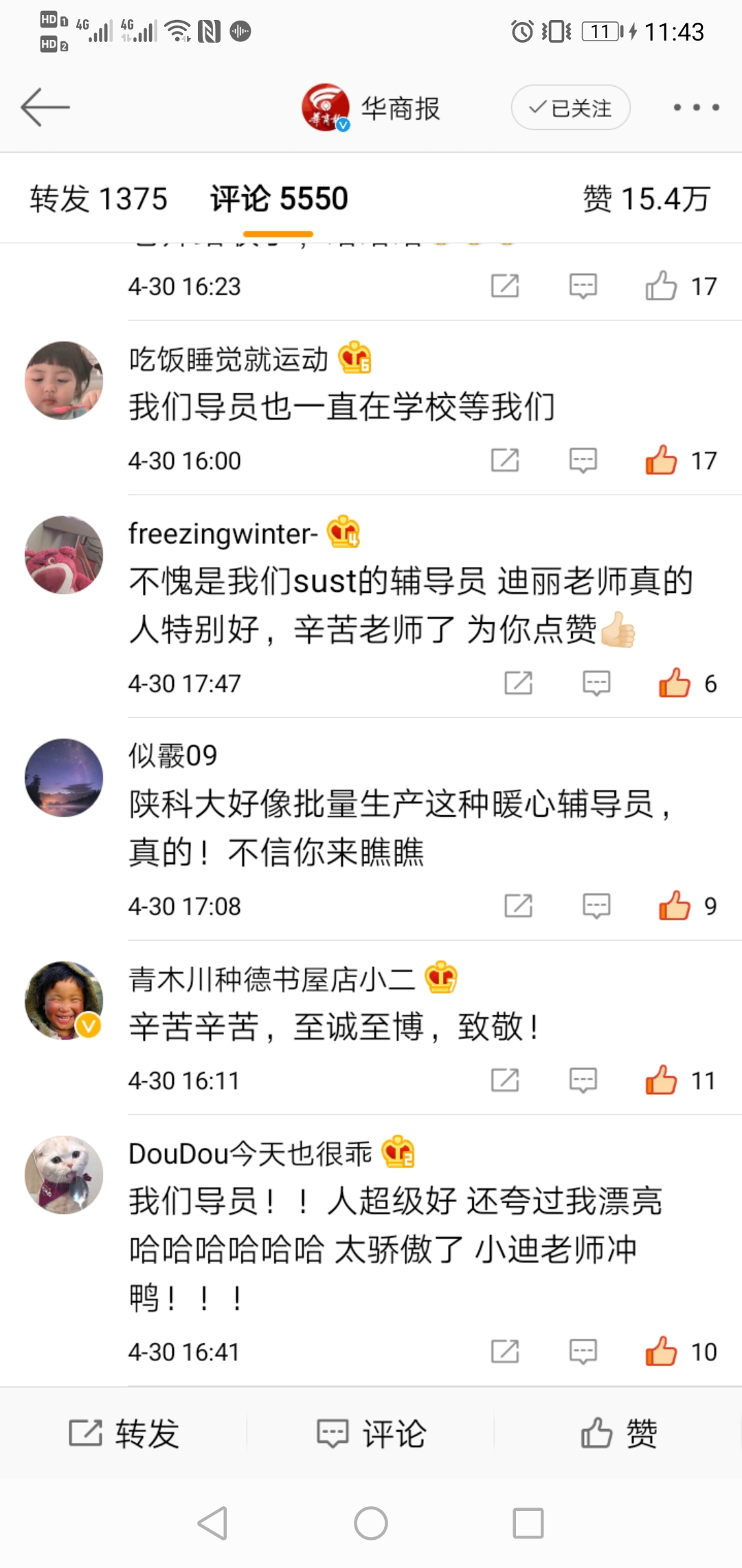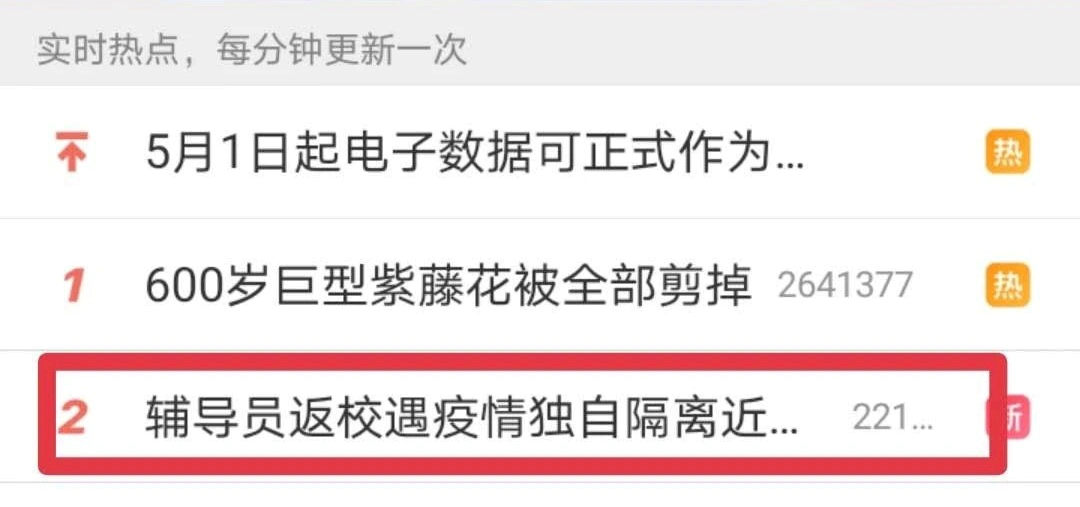 4月30日,一条#辅导员返校遇疫情独自隔离近百天#话题冲上热搜榜第二,中青网教育、三秦青年、华商报、搜狐千里眼、西安发布、中华全国学联等媒体争相报道,话题热度一度居高不下,话题阅读量高达7000多万,视频播放量也将近700万。而这位辅导员也在网络上得到陕科大校友们的“应援”,齐心称她是学生们靠山般的存在。