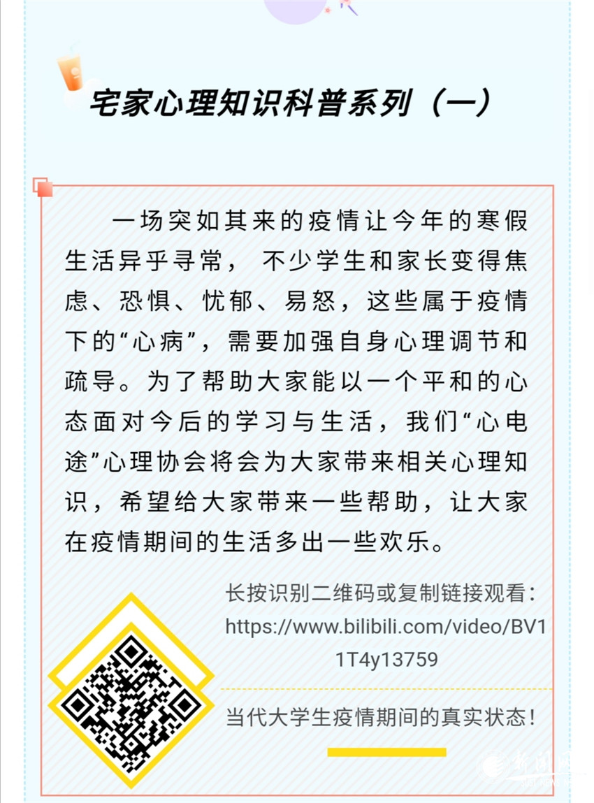 活动期间,学院在公众号上,进行心理云推送,科普心理危机应对知识,推送了多期抗“疫”心理健康专题推文。“你还好吗”,让学生对于心理应激有了清晰的认识;“表达爱”,从积极心理学角度让学生体会了表达爱的具体方式;“宅家心理知识科普系列”多角度宣传了学习心理、情绪调节等心理健康知识。