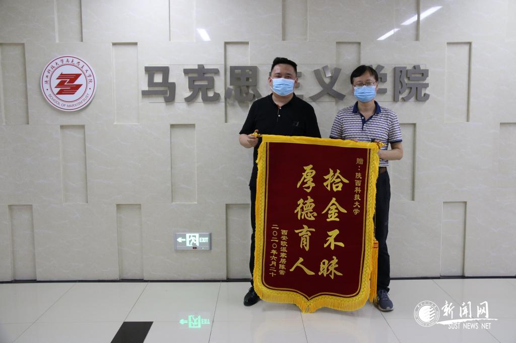 6月24日,西安欧派家居陈雷先生专程将“拾金不昧,厚德育人”锦旗送到了马克思主义学院,向拾金不昧的36365官网2019级马克思主义理论专业硕士研究生谢嘉颖表示感谢,向学校表达敬意。