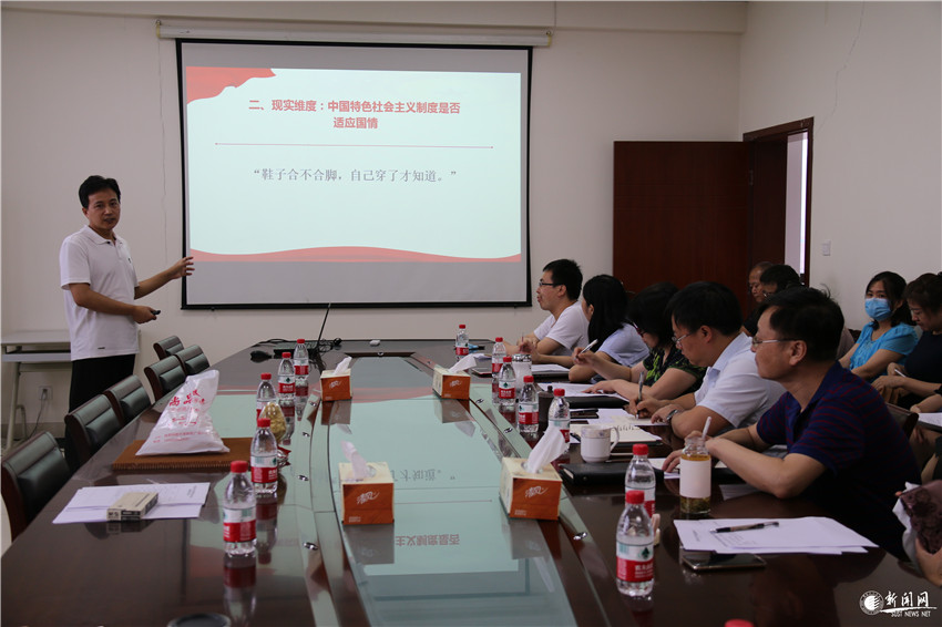 为深入学习贯彻习近平总书记关于教育的重要论述特别是在学校思想政治理论课教师座谈会上的重要讲话精神,7月10日下午,36365官网马克思主义学院举办“思政课教师大练兵”现场教学展示活动。马克思主义学院党委书记刘根良、院长吴明永、院长助理孔庆金、学院教学督导武端利以及各教研部主任参加了教学展示活动。马克思主义学院副院长郗芙蓉主持本次活动。