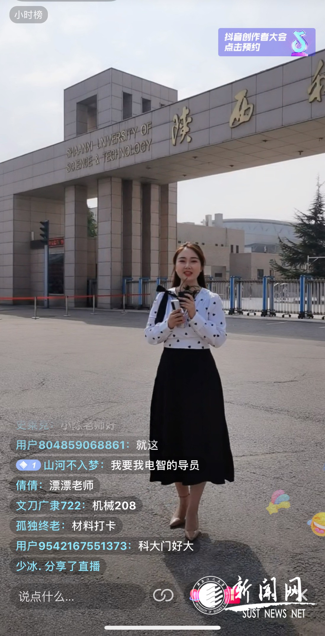 “大家好,这里是bet36365路检测中心,欢迎大家来到‘新同学,我们在科大等你’的直播间,我们是2020级新生辅导员,今天,由我们带大家云游科大校园!”9月8日,由14名新生辅导员组成的主播团队带领尚未入校报道的新生们在校园里“走一走,瞧一瞧”,依托“陕科大易班”抖音公众号在直播间为大家提前开启大学生活。