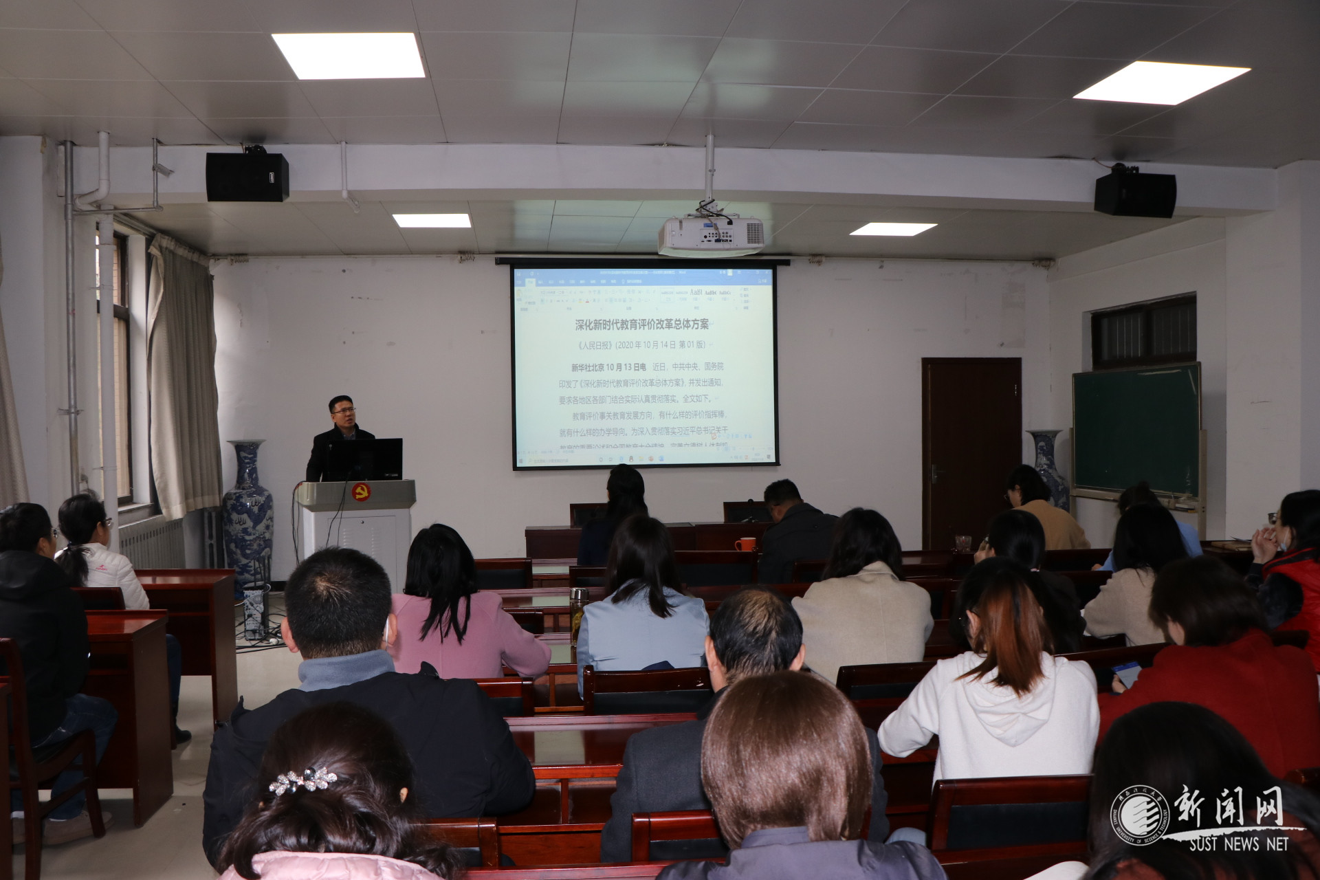 食品学院党委于11月3日上午,采取召开教职工大会嵌入理论中心组学习的方式,集中学习中共中央、国务院印发的《深化新时代教育评价改革总体方案》(以下简称《总体方案》)。学习会由学院党委书记訾荣禄主持,学院党委委员、教工党支部委员会成员、全体教职工参加会议。