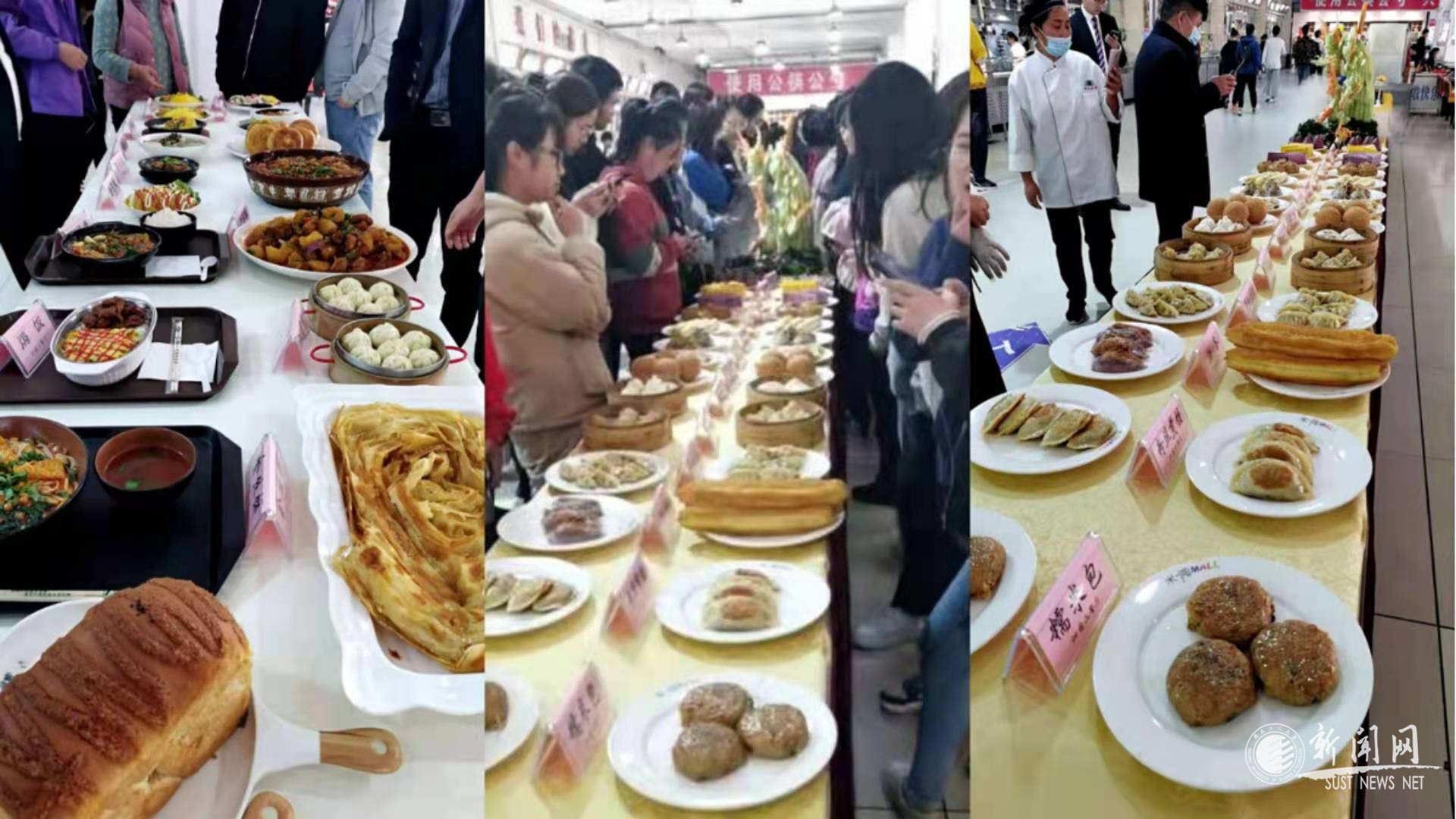 12:00正值用餐高峰期,一份份精心烹饪的参赛作品整齐地摆放在沁园一餐厅,迎接评委和师生的点评。师生们纷纷驻足,品鉴美食、拍照留影,现场气氛浓烈,俨然成为一场“陕科大美食嘉年华”。