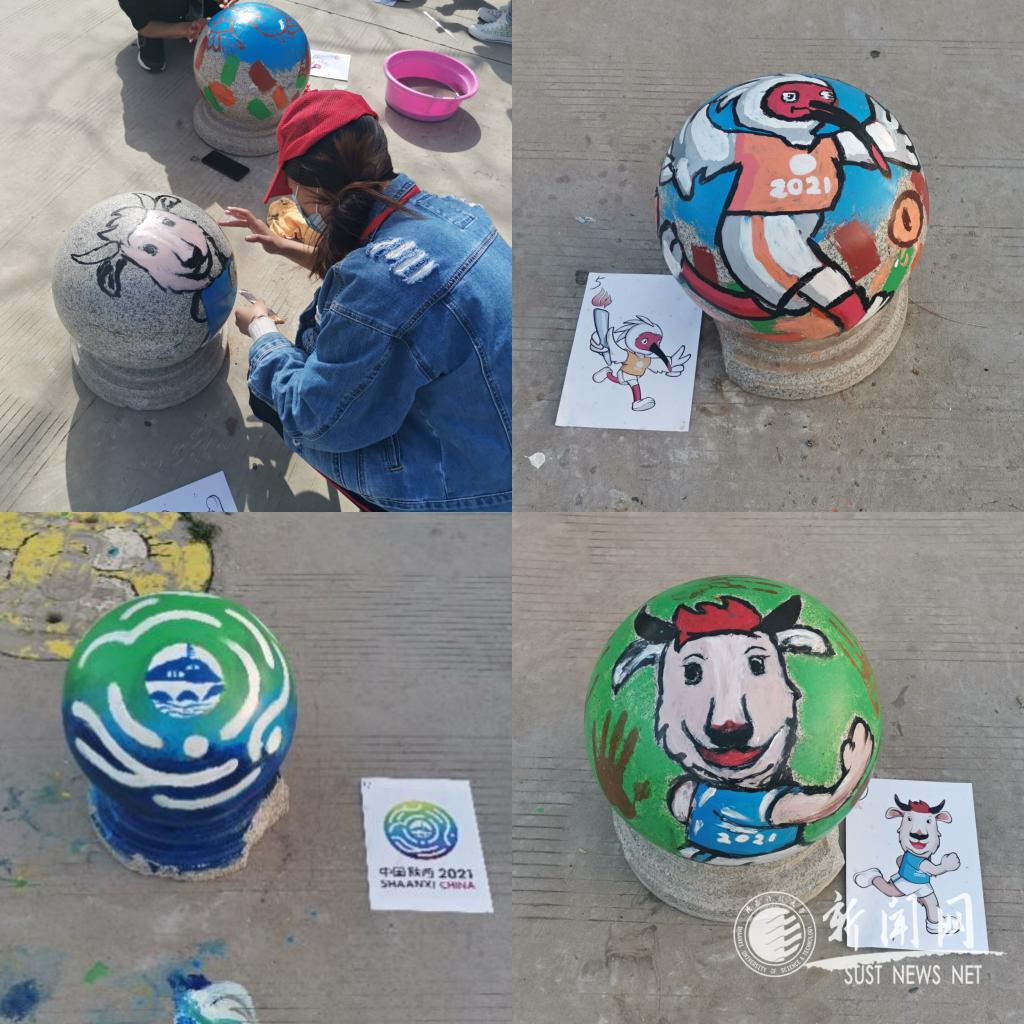 聚力十四运,志愿新风采。轻工青团与支付宝捐步平台合作,进行步数捐赠,助力贫困地区建设。每周累计捐步超百万步,乘运动之帆,为公益助力。同时,16名志愿者将十四运会徽、吉祥物、校徽等彩绘图案以及“喜迎建党一百周年”等标语绘制于图书馆门前石墩,助力全运盛会,筑梦最美科大。