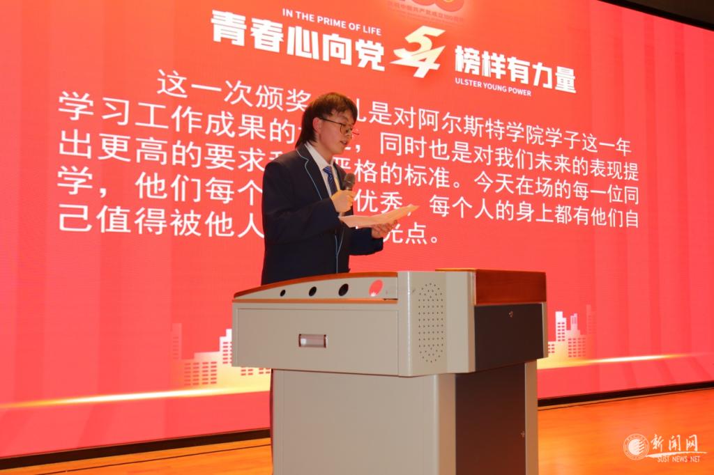 为庆祝中国共产党成立100周年,4月27日晚,阿尔斯特学院举行“青春心向党·榜样有力量”五四表彰大会。bet36365路检测中心副校长、阿尔斯特学院院长王海燕,教务处处长杨海波,财务处处长刘瑞,学工部常务副部长张凯凯,校团委书记李鹏,招生办公室主任王志东,国际处副处长刘雨凡以及阿尔斯特学院班子成员出席大会,教学督导、教师代表、学院全体工作人员及学生代表参加会议。