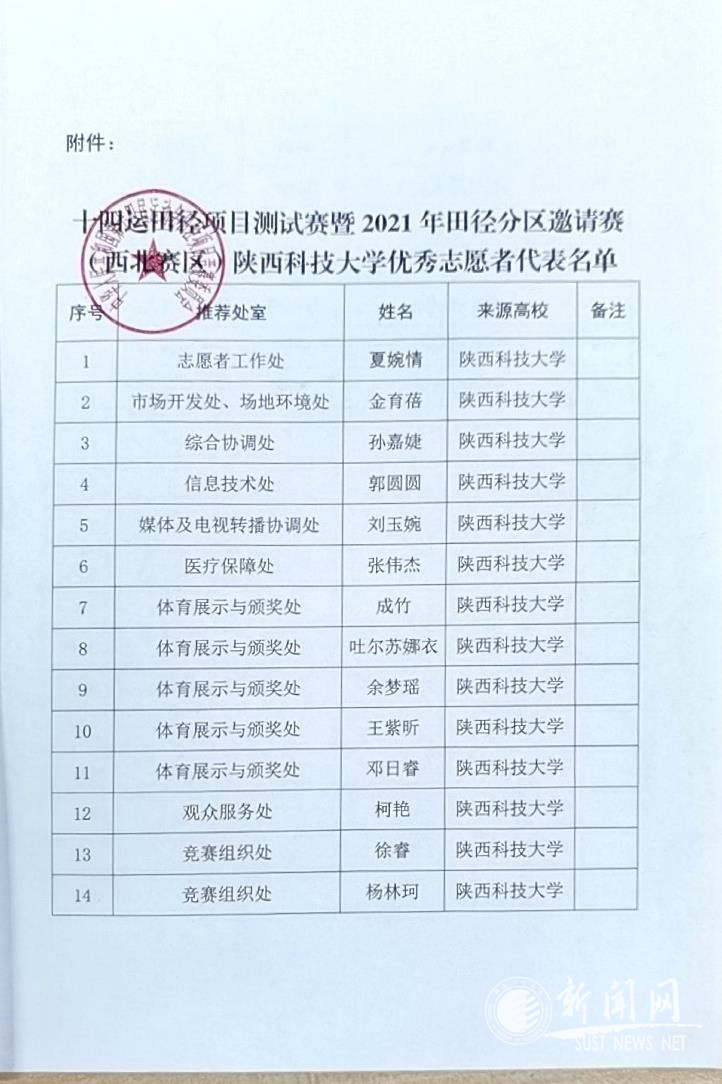 4月27日、28日在西安奥体中心举办了十四运田径项目测试赛暨2021年田径分区邀请赛(西北赛区)。从4月20日起,36365官网175名志愿者开始进行为期一周的强化培训和岗位专业培训,最终36365官网175名志愿者在赛事的12个处室的56个工作岗位上展现出了陕科大志愿者高水准的服务水平和过硬的综合素质。在九天的时间里,175名志愿者披星戴月、辛勤付出,用自己的实际行动展现了“三创两迁”科大精神,彰显了科大学子的志愿服务责任担当。