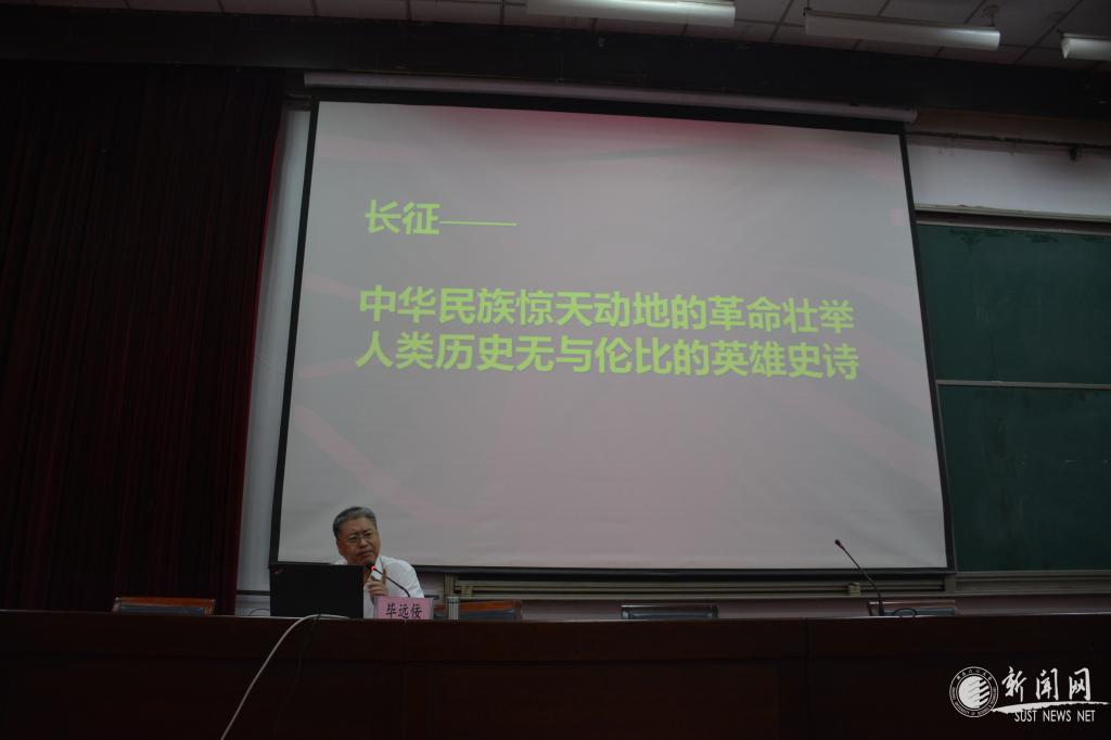报告会上,毕远佞教授首先阐明了学史要明什么理的问题。他指出虽然明理的内涵很丰富,但最基本的是“三个为什么”——中国共产党为什么“能”、马克思主义为什么“行”、中国特色社会主义为什么“好”。其次,他通过大量的党史文献和史实材料,详细阐述了红军长征的历史背景和主要经过,生动再现了长征这一中华民族惊天动地的革命壮举、人类历史无与伦比的英雄史诗,带领大家一起重温先辈们用青春和热血谱写的那段可歌可泣的辉煌历程。最后,他深刻分析了中国共产党领导红军赢得长征胜利的主要原因和红军长征胜利的伟大意义。毕远佞教授的报告立意高远、逻辑严密、史料详实、生动形象,令在场师生心潮澎湃、感慨万千。