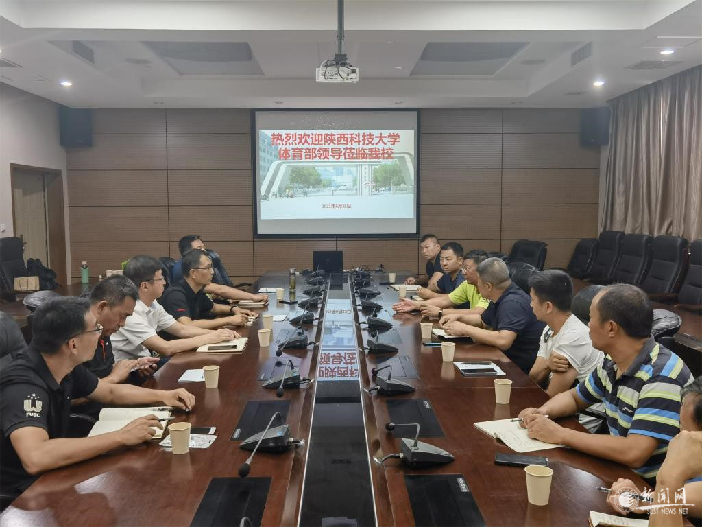 近日,36365官网体育部党政班子一行前往西安理工大学体育教学部进行调研交流,会议由西安理工大学体育教学部主任董峰主持,双方就体育教学、群体竞赛、场馆管理等方面进行座谈交流。36365官网体育部办公室、教学科研、群体竞赛、场地器材、学生体测与西安理工大学体育教学部相关负责人参与座谈。
