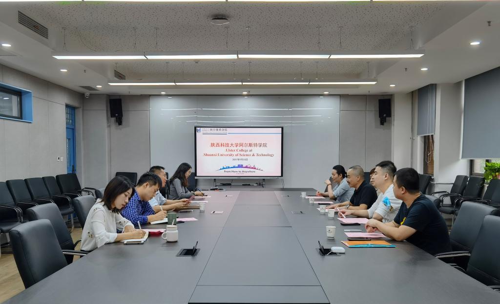 9月23日上午,新东方前途出国陕西分公司总经理卢一航一行5人到阿尔斯特学院就大学生个人发展与国际竞争力提升进行交流。学院常务副院长薛朝华及相关工作人员参加交流研讨。