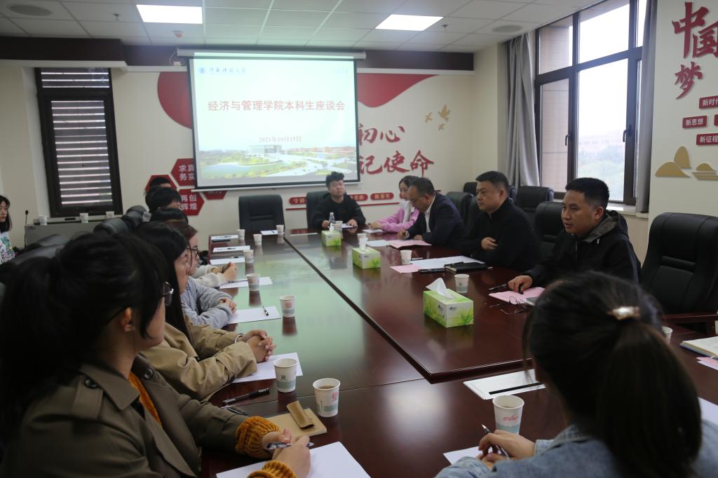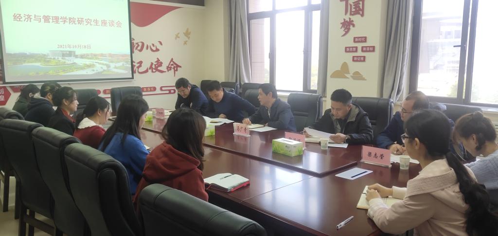 为深入推进党史学习教育,全面掌握、解决好学生学习生活中“急难愁盼”的现实问题,做到真解决问题,解决真问题。经管学院在人文楼A415分别于10月15日、18日举行了本科生和研究生代表座谈会。学院班子成员、研究生秘书、辅导员和学生代表参加座谈会。