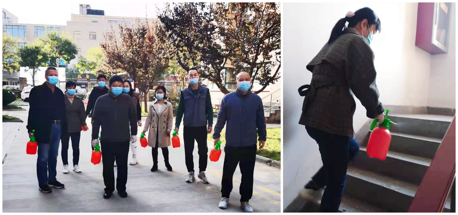 参与楼宇消杀,助力小区防疫。11月15日,在沁园小区,后勤一支部组织开展了“楼宇消杀志愿服务活动”,8名党员分成3组,对小区住宅楼40个单元的电梯间、楼梯、一楼大厅等公共区域进行全面消杀。他们拿着喷壶,一个单元一个单元地走,一层楼一层楼地爬,细心地把消杀药水喷洒到每个角落,为小区师生打造安全居住环境贡献一份力量。