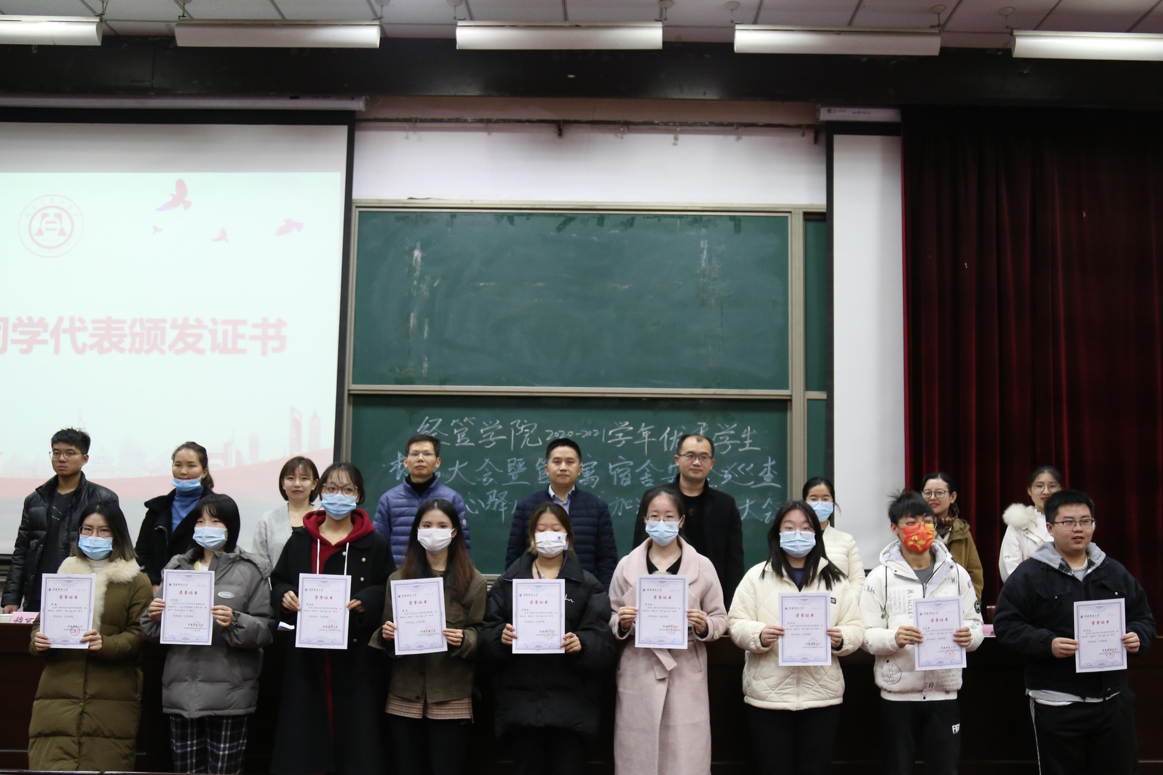 经管学院团委书记梁志莹宣读了《关于表彰经济与管理学院2020-2021学年学业先进个人、优秀学业进步之星、四六级之星的决定》《关于表彰2020-2021少数民族先进个人和民族团结模范个人的决定》《关于表彰经济与管理学院2022届团学组织优秀个人的决定》《关于表彰经济与管理学院2022届学生事务服务中心优秀个人的决定》,与会老师为获奖学生代表颁奖。颁奖结束后,获奖学生代表毕慧娟、苏比努尔和王林娜依次发表获奖感言。