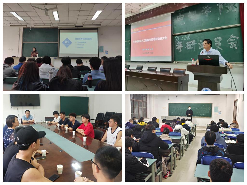 面对全国2022届高校毕业生规模和增量均创历史新高的大背景,学院研究生报考率较上一年提升12.21%,就业学生人数大幅下降的现实情况下,电智学院深入研判就业形势,为进一步调动广大毕业生的就业积极性,增强就业紧迫感,7月至10月,分专业、分阶段、有针对性的集中召开了7场就业形势分析与动员会,帮助毕业生深入了解当下严峻的就业形势,深刻剖析自身的优劣势,告知招聘信息获取途径,鼓励广大毕业生尽快确定求职定位,做好求职心理准备,树立“先就业后择业”的择业观,积极参加各类招聘会,把握求职机会,拧紧就业工作“总开关”。