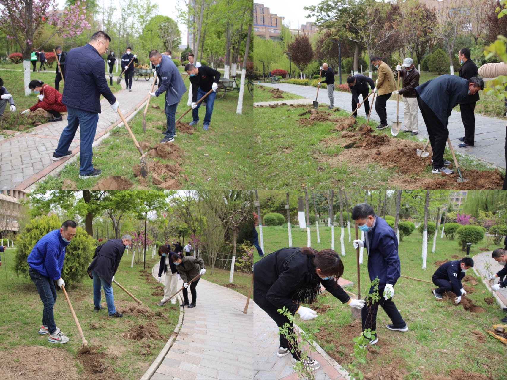 下午三点,在鸟语花香、绿草如茵的科大湖畔,全体党员干劲十足地投入到植树活动中。搬运树苗、挥铲挖坑、扶苗培土、踩土定植……大家互相配合、分工协作,每一个环节都认真细致、衔接有序,在挥洒汗水的同时,也不忘交流工作、分享生活,现场不时响起愉快的笑声,呈现出一派热火朝天的劳动景象。