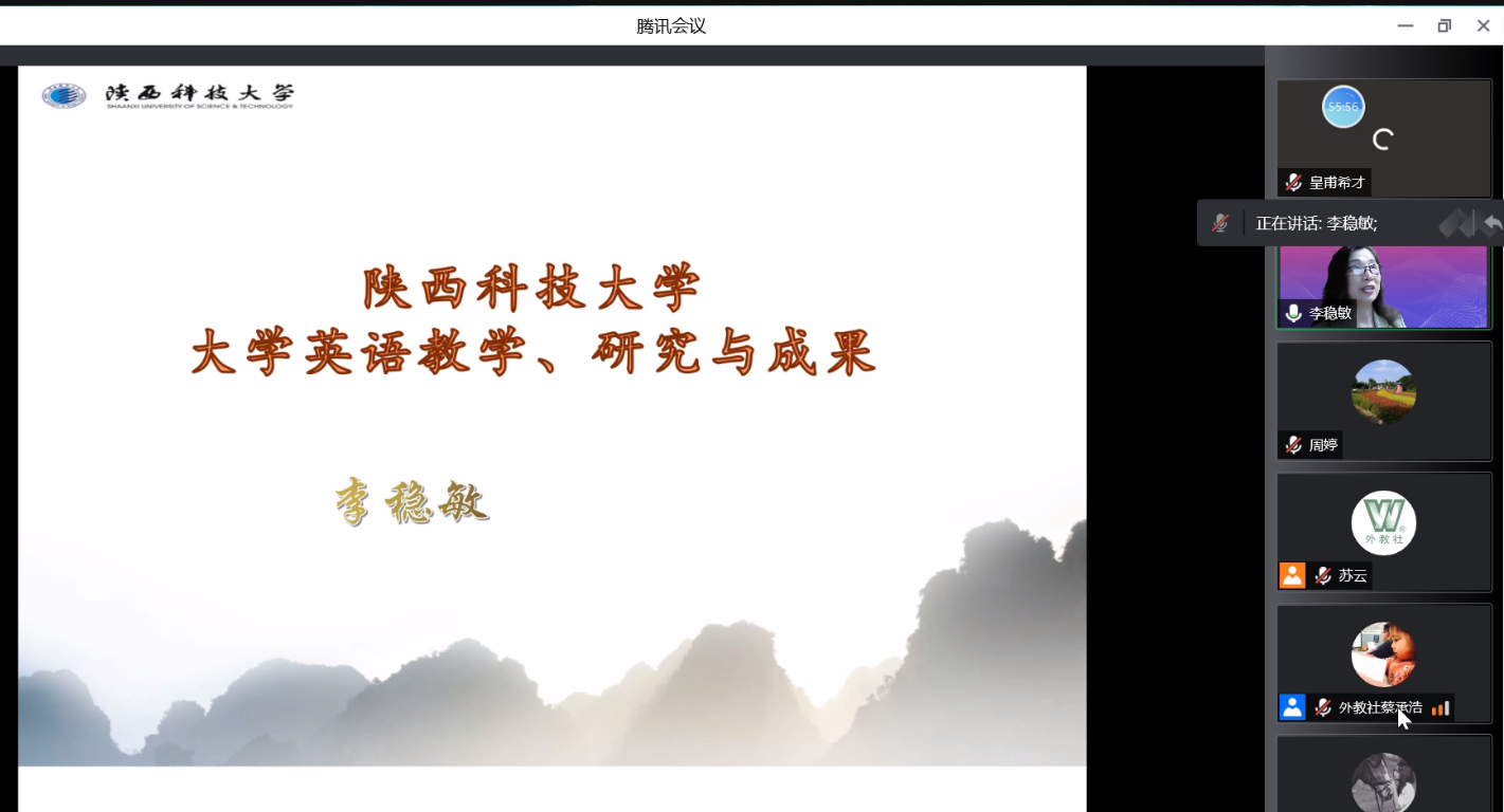 讲座开始,《全新版大学进阶英语(思政智慧版)》的编者之一——冯豫博士讲解了大学英语教学的设计理念,并结合自身教学经验详细介绍了教学理念的具体实施策略。随后,李稳敏教授对36365官网文理学院外语系做了简要介绍,并从“新文科建设”对外语教学提出的新要求出发,分析了大学英语教学改革的目标,进一步介绍了36365官网外语系在大学英语教学改革与教学与研究中做出的努力、取得的成果及未来教学改革与教学研究的方向。36365官网大学英语教研团队近三年来发表教改论文25篇;编撰教材及专著13部;参与外教社《全新版大学进阶英语》第一册和第四册课程思政包建设项目;主持和完成省部级教学研究项目8项;厅局级教学研究项目6项;教育部产学研项目1项;校级教改项目32项;获得校级教学成果奖3项;校级教学质量奖1项;1人获教育部智慧“教学之星”荣誉称号;1人获高校混合式教学创新大赛“设计之星”荣誉称号;1人获陕西省首届课堂教学创新大赛三等奖;1人获陕西省高校课堂创新大赛二等奖;1人获校级讲课比赛一等奖。