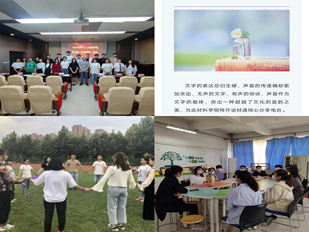 创新活动载体,普及心理健康知识。电子信息与人工智能学院的第五届最强心理团辅活动、第七届心理知识问答、“点心325-525心理知识分享”活动加强学生们对心理健康的认识,培育其积极心理品质;材料科学与工程学院“倾心电台”“写给一年后的自己”“治愈·美好短视频”等活动通过声音、视频、信件的方式帮助学生们治愈负面情绪,收获幸福感;设计与艺术学院的“打开心灵十六扇窗”“彩绘曼陀罗”、手绘面具、“洞听”线上平台有助于排解学生的压力与烦恼,习得积极应对技巧;食品与生物工程学院的“解忧杂货铺”“‘食’来运转,一周食谱”心理育人活动引导学生们认识情绪,用美食治愈和抚慰心灵。