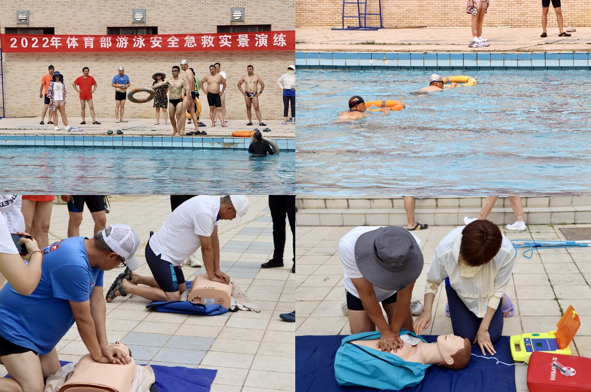 为强化游泳池安全管理,进一步加强游泳池救生工作专业水平,提升教师泳池安全应急救护意识和应变处理能力及应急指挥调度效率,防范溺水安全事故的发生,6月9日上午,体育部组织全体教师在36365官网游泳池进行游泳安全急救实景演练,演练活动分为三个环节,分别为强化《游泳课安全组织和教学要求》、游泳救生讲解和演练、心肺复苏急救及AED除颤仪使用演练。