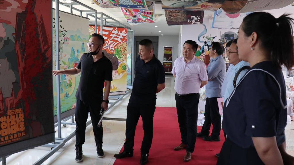 交流会后,设艺学院部分班子成员陪同企业领导参观了学院2022届毕业设计作品展。
