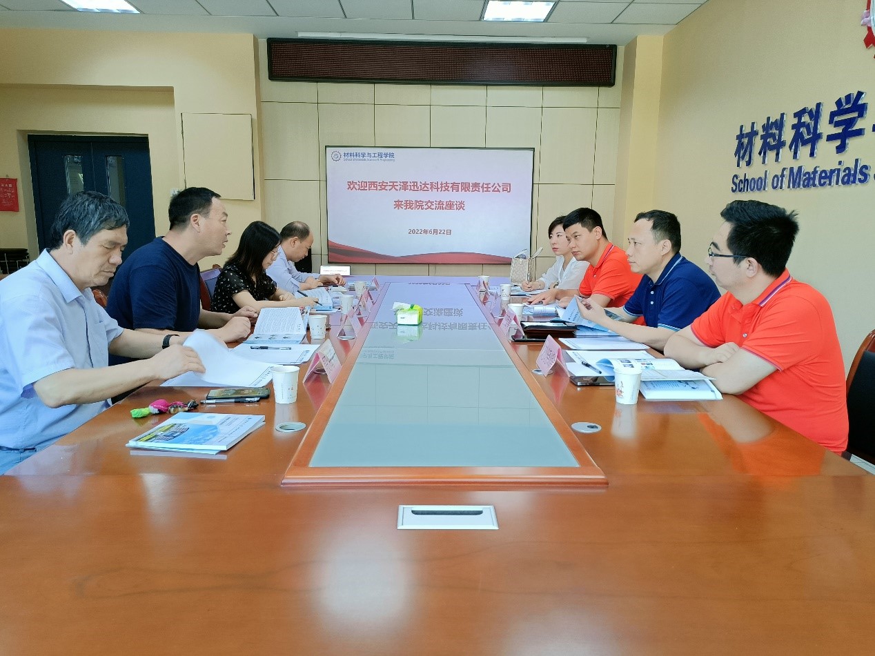 朱建锋首先对富士达公司和天泽迅达公司一行的到来表示欢迎,并介绍了近年来材料学院在学科建设、科学研究、人才培养、人才队伍建设、服务地方等方面取得的成绩。朱建锋表示,希望与企业积极对接,力促双方优势互补、共同进步,更好地服务陕西社会和经济发展。王军亮介绍了富士达公司的主要业务范围、经营、研发相关情况,提出对微波通讯产品研制的技术需求,如微波有源、无源器件,微波组件及其他微波通讯产品的研制和生产。杨海涛介绍了天泽迅达公司关于电子元器件制造和研发相关技术需求,并表示希望与材料学院合作攻克相关技术难题。最后,与会专家、教师、技术人员就各自的研究方向进行交流,了解公司对材料相关技术需求的具体指标,就电子信息相关材料的研究成果转化等问题进行了讨论。