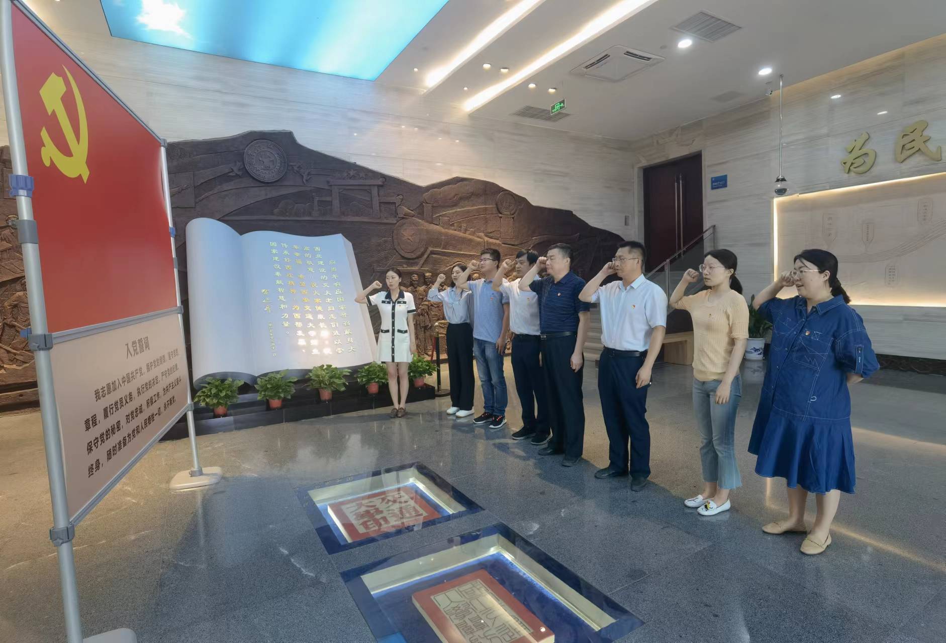 6月17日,阿尔斯特学院组织全体教工党员赴西安交大西迁博物馆开展习近平总书记国内考察重要足迹寻访重温主题党日活动。参观完毕,全体教工党员面对党旗重温入党誓词。