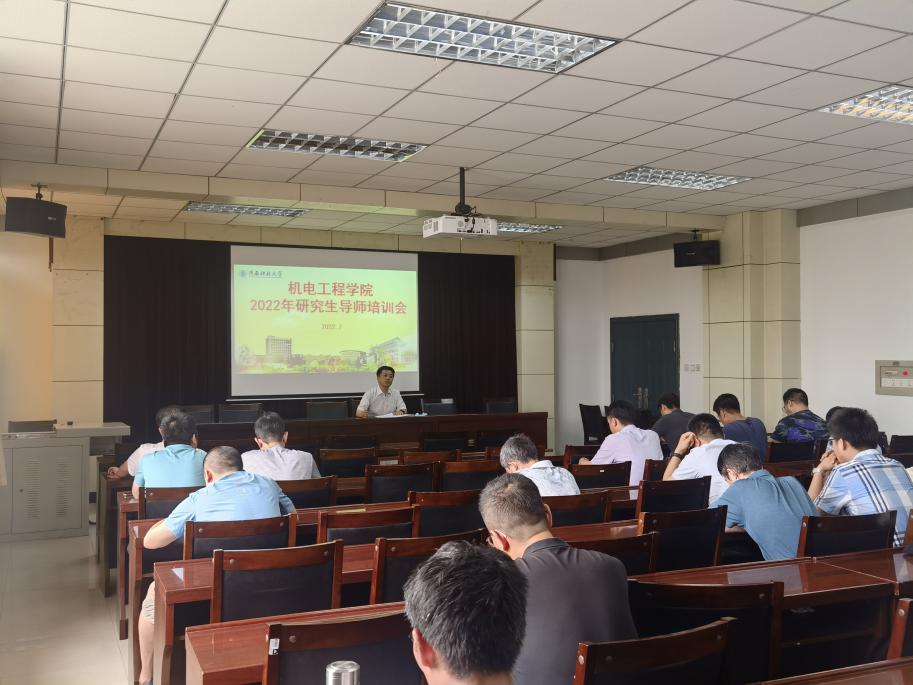 为贯彻落实学校有关研究生教育会议精神,聚焦学校学科建设布局,提升导师指导能力,推进研究生教育高质量发展,7月15日,机电工程学院在实验楼2B304召开2022年研究生教育工作暨研究生导师培训会议。会议由副院长杨立军主持,学院全体研究生导师参加会议。