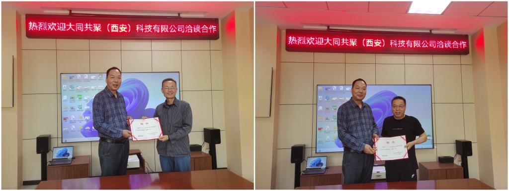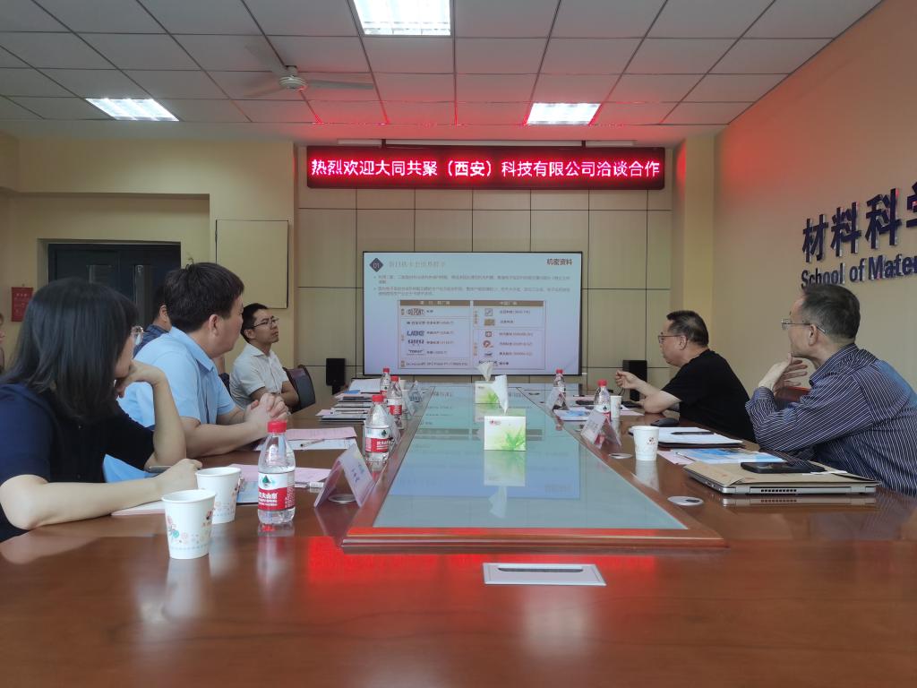 为进一步促进产学研开放合作,近日,大同共聚(西安)科技有限公司董事长聂新宇、总经理李陶琦来36365官网材料学院(文物保护科学与技术学院)洽谈科研合作。材料学院院长朱建锋,副院长刘辉、王卓,刘晓旭教授及相关科研领域教师参加了签约仪式,会议由刘辉主持。