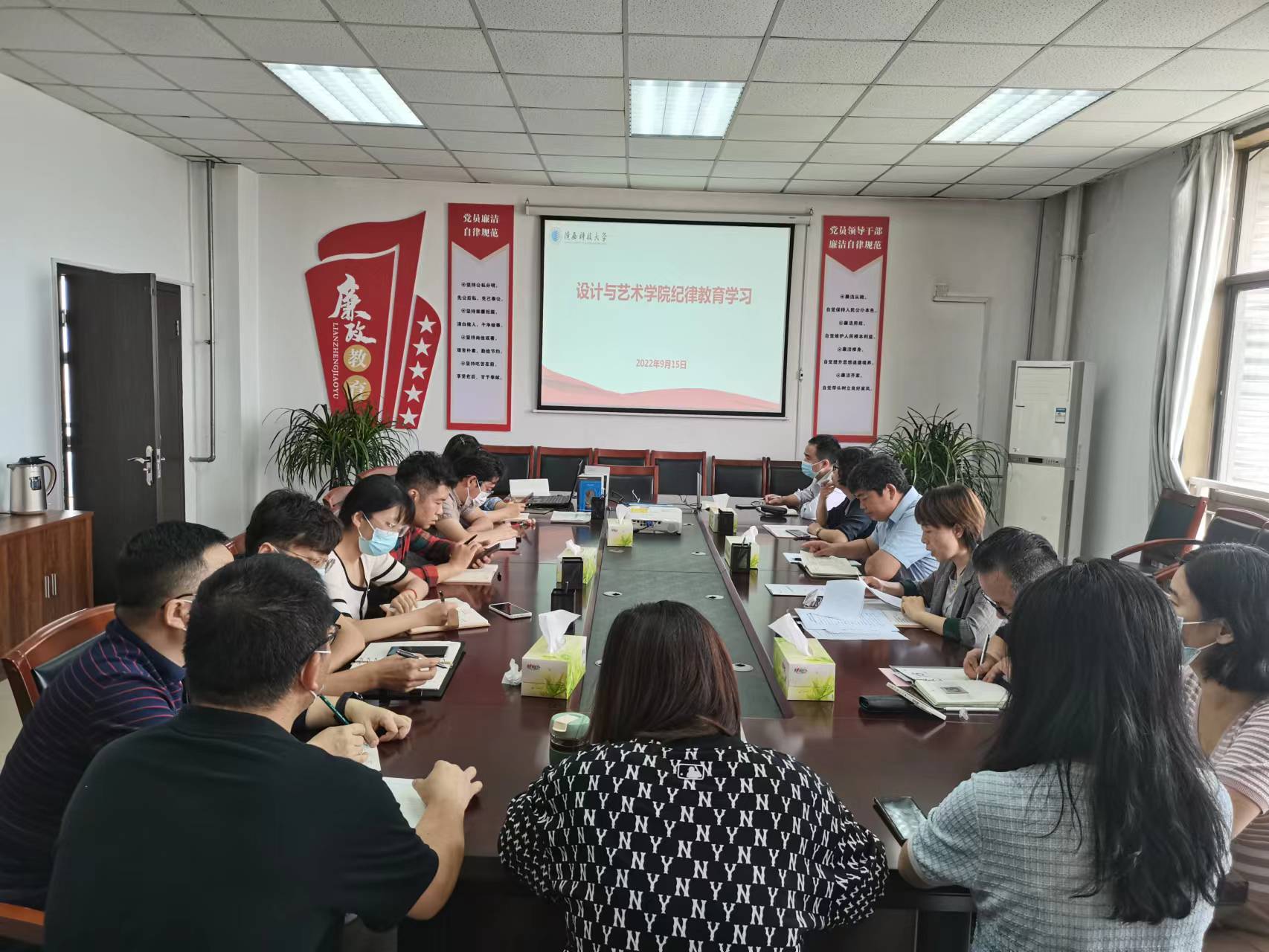 9月15日,设计与艺术学院(丝路文化与传播学院)党委在学校廉政教育基地召开了纪律作风及安全稳定工作会议。学院班子成员、党支部书记、教研室主任及正科级干部参加会议,院党委副书记安玲主持会议。