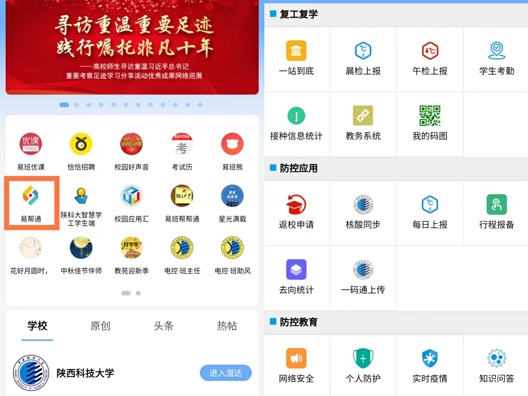 入秋以来,全国各地疫情时有反复。为最大程度地保障来自五湖四海的学生安全报到,在学校的统筹安排下,网络思政中心配合学工部,对基于易班的校内自主研发系统“易帮通”进行了全面升级。辅导员可通过线上系统对学生返校条件进行提前审核研判,对学生返校到校情况开展行程核验,实现工作便利化、人性化、数据化,极大提高了工作效率。