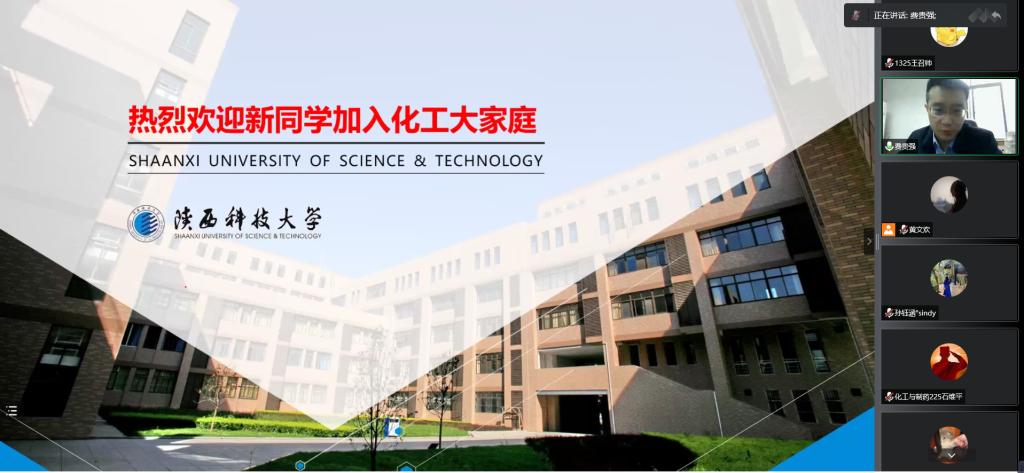 会议分为三项议程:第一项由费贵强教授进行开学第一课,第二项化工学院大咖讲座——线上科研领域经验分享,第三项新生代表调研座谈会。