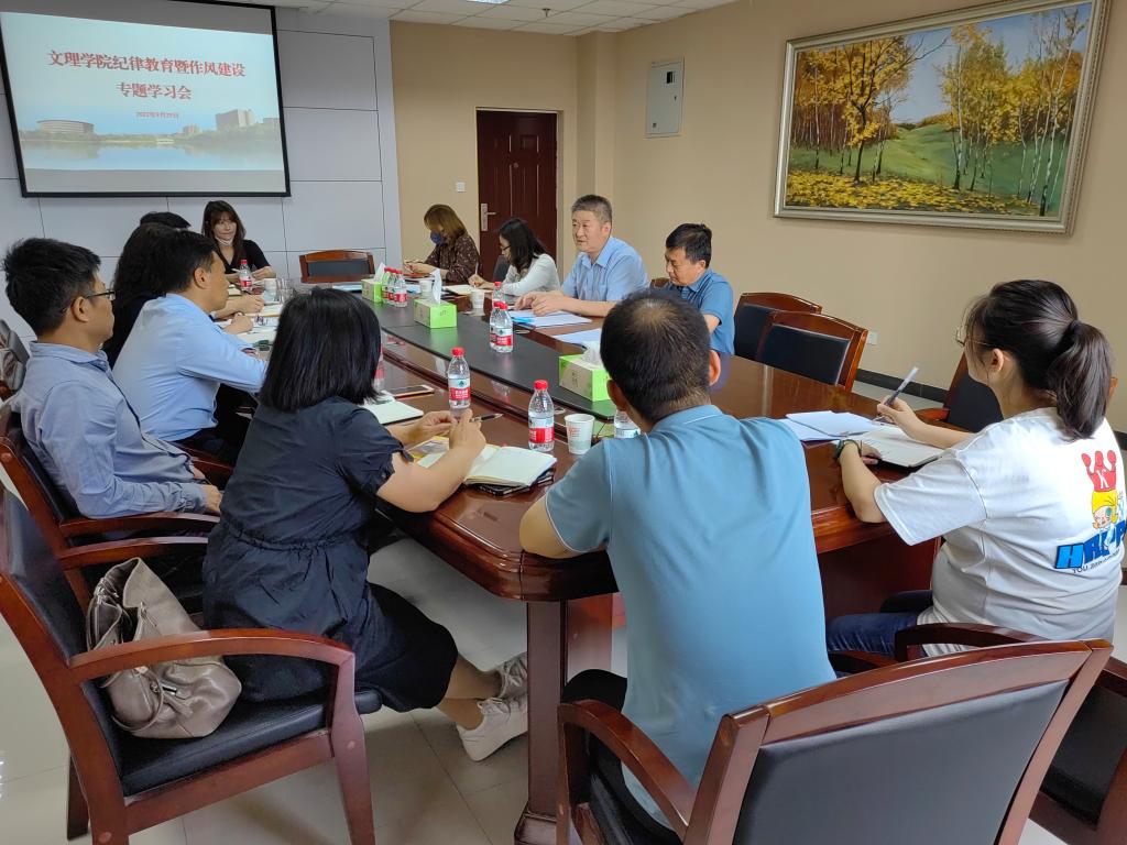 文理学院扎实推进纪律教育暨作风建设专项行动开展,前期,通过在全体师生范围深入查摆学院层面的作风问题,找准找实问题;学院以“坚守科研诚信,杜绝学术不端”为主题,组织全院教职工开展师德师风集中学习;组织各教工党支部书记围绕党纪教育主题,讲授纪律教育专题党课,引导教师严明学术纪律,规范学术行为。