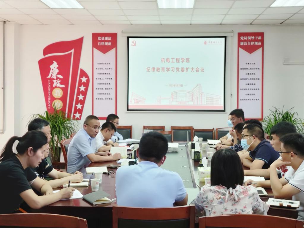 9月28日,机电工程学院(智能制造与机器人工程学院)在学校廉政教育基地开展纪律教育学习党委扩大会,学院班子成员、党委委员、各教工和学生党支部书记以及科级干部参加学习教育。学院党委副书记景马良主持会议。