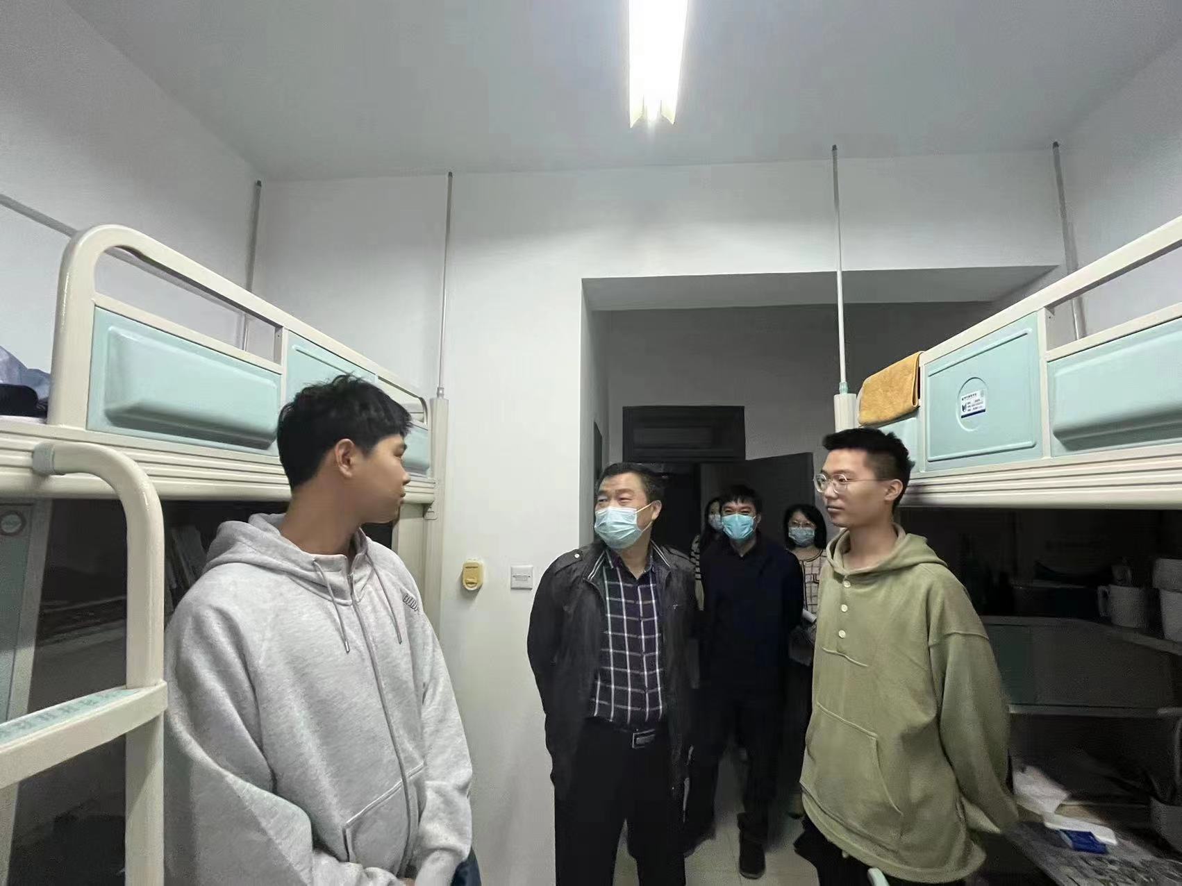 院党委书记贺涛代表学院向全体同学送上节日祝福,详细了解同学们假期的学习和生活情况,特别叮嘱同学们疫情期间做好个人防护,注意添衣保暖。在新生宿舍,他鼓励同学们要尽快适应大学的新生活,养成良好的学习和生活习惯,只争朝夕,不负韶华。