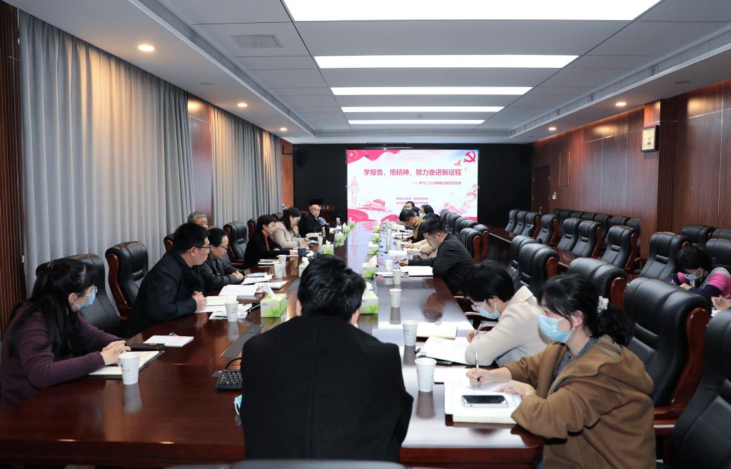 为深入学习宣传贯彻党的二十大精神,积极引导党员同志深刻领会和把握大会精神实质和丰富内涵,机关党委财务处、宣传部、招生办、审计处党支部于11月10日在逸夫楼506会议室联合开展了以“学报告,悟精神,努力奋进新征程”为主题的学习党的二十大精神主题党日活动。四个支部全体党员参加了这次主题党日活动,活动由财务处党支部书记刘瑞主持。