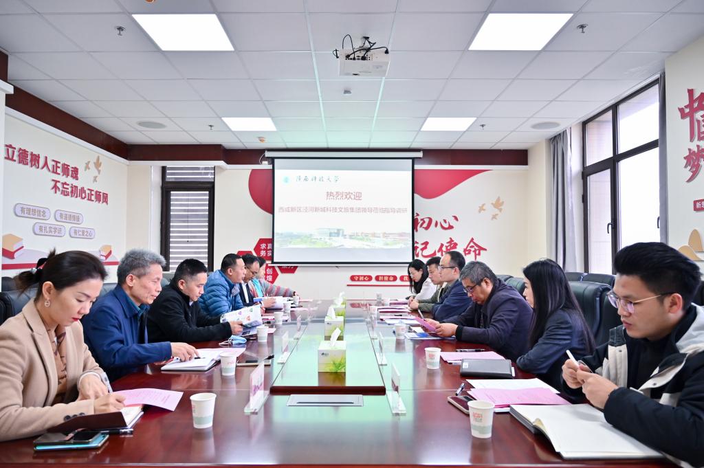 郭华对能够和经管学院在创新创业人才培育、产学研深度融合等领域开展校企战略合作表示感谢。他介绍了泾河新城科技文旅集团“产业+文旅+科技”深度融合发展的集团使命以及“科技引领、产业支撑、双链融合、文旅振兴”的发展思路,对泾河新城科技文旅集团的业务板块、公司结构、发展趋势、校企合作“六个需求”进行了详细介绍。他希望,集团借此机遇,在创新创业人才培育、大学生社会实习实践、应届毕业生就业、知识产权战略规划项目合作、茯茶企业高管培训班、学科竞赛支持等方面与学院加强进一步沟通并开展深度项目合作。