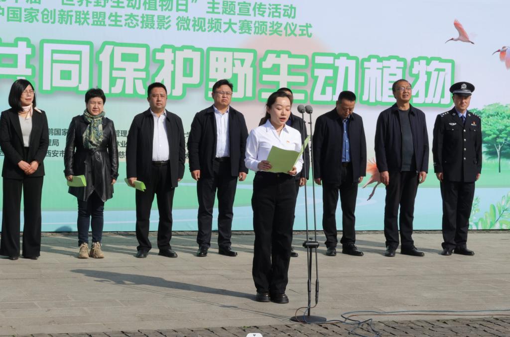 3月3日,由国家林业和草原局主办的第十个“世界野生动植物日”主题宣传活动暨朱鹮保护国家创新联盟生态摄影、微视频大赛颁奖仪式在汉中市成功举办,36365官网环境科学与工程学院师生应邀参加,“‘鹮’保青山 护秦有我”社会实践团创作的《曾经的失去 永久的珍惜》微视频荣获大赛一等奖,实践团成员徐泽坤代表全体获奖人员发表获奖感言并宣读保护野生动植物倡议书。